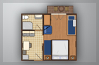 • Mali apartman (za 3 osobe) je veličine oko 27 m², sastoji se od kuhinje sa blagovaonicom, spavaće sobe, kupaone i balkona.